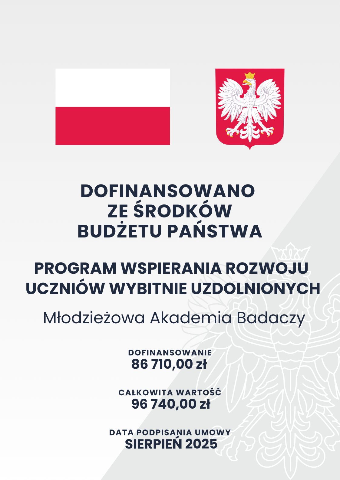Zadanie publiczne współfinansowane ze środków otrzymanych w 2025 r. od Ministra Edukacji w ramach konkursu „Program wspierania rozwoju uczniów wybitnie uzdolnionych”.